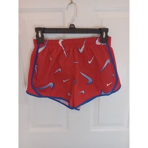 Nike Girls Dri-Fit Tempo Allover Swoosh Print Running Shorts Lined Large Look