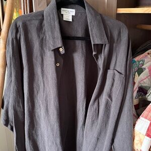Measures approx 35 x 75 inches. Has 2 metal rings screwed into a wood frame bar.
