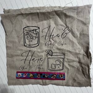 His and hers drink banner. Her is Gin and Tonic and his is rum and coke. Edges are raw so this can be hung, used with a pipe and drape, framed, etc. Design itself is about 12 inches wide.