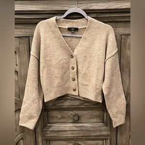 EUC Women's LULU’S Light Tan Button Down Cropped Cardigan Sweater (XS)