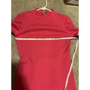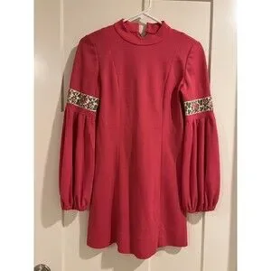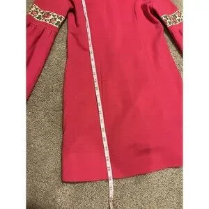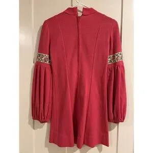 Amazing 70s pink sweater dress with balloon sleeves and floral trim detail. No size but would think womens small to medium (see photos for measurements). Great vintage condition.