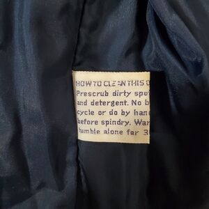 Oberymyer puffer zip up ski coat in dark blue with red, green, yellow and white side stripe accent. Habd pockets and inner pocket. Very good condition.
