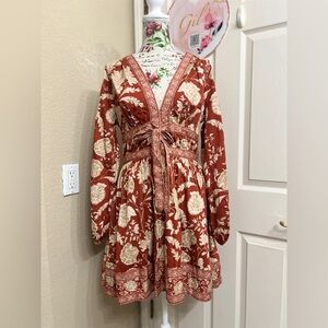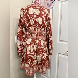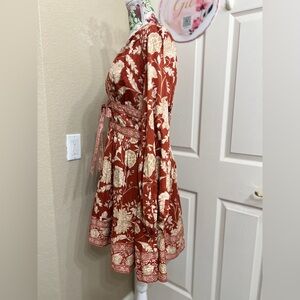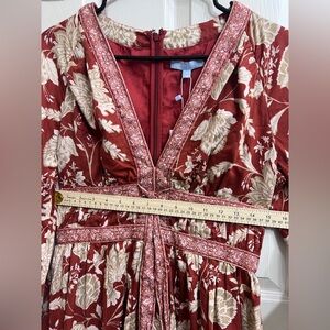 ANTONIO MELANI Red and Cream Floral Long Sleeve Dress