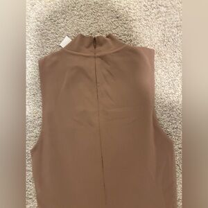 Elegant sleeveless brown one piece, perfect for any occasion. Feels buttery smooth. Enjoy a comfortable and stylish fit. Never worn, new with tag. Has a small discoloration in the corner (as seen on 3rd picture)