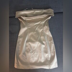 NWT Aritzia Shimmer Tube Satin Dress Mini Gold/Beige Size 2