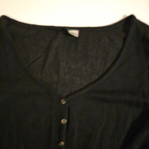 Elevate your style with this chic black button-up ribbed top. Perfect for any occasion, it offers both comfort and elegance.