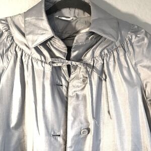 #VintageFSA #MetallicCoat #SilverTrench #SwingCoat #VintageOuterwear #RegencyCore #RetroFuturism #OperaCoat #StatementCoat #90sVintage #Y2KStyle #ResaleFashion