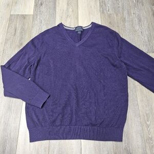 Lands' End V Neck Sweater Lightweight Supima Cotton Purple Eggplant Womens Large