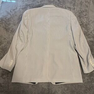 Keywords: Mens Seersucker Blazer, Striped Sport Coat, Gray White Blazer, 44R Blazer, City O'Clad Jacket, Mens Formal Wear, Summer Blazer, Lightweight Sport Coat, Classic Mens Clothing, Professional Attire, Business Casual Blazer, Polyester Sport Coat
