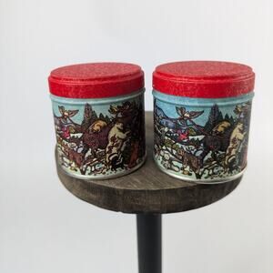 Title: Vtg Miniature Christmas Tins Forest Animals Tree 2" Holiday Container Gift Box