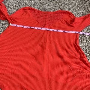 Free People Hot Sauce Red Thermal Top - Bell Sleeves & Eyelet Trim