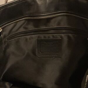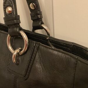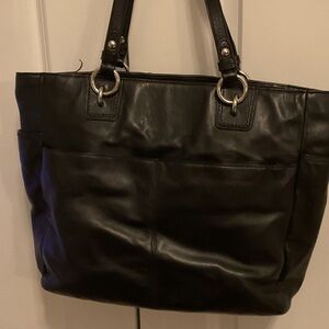 Sleek black leather tote by Coach. Perfect for everyday use.