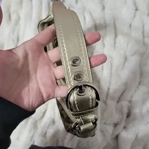 It has brown patchwork design + metallic gold accents. No stains or rips.