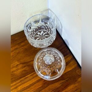 Vintage Pressed Cut Glass Sugar Bowl/Candy Dish w/ Lid Starburst Diamond Fan
