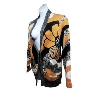 Free People Peach Orchid Petals Oversized Knit Boho Open Cardigan Sweater XS Abstract Floral Shawl Collar Front Pockets Soft Relaxed. Great Pre-Owned Condition Gently Worn. Ships from smoke free home.