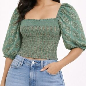 Commence top, puff sleeve blouse, smocked crop top, boho chic shirt, festival outfit, teal printed top, square neck blouse, cottagecore fashion, trendy summer top, NWT blouse, whimsygoth, cottagecore, 2016
