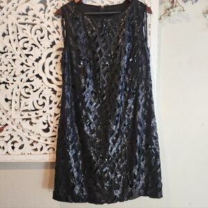 TADASHI SHOJI SEQUINS SLEEVELESS FORMAL DRESS SILK BLACK WOMENS SIZE 12