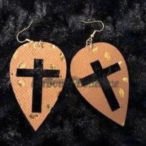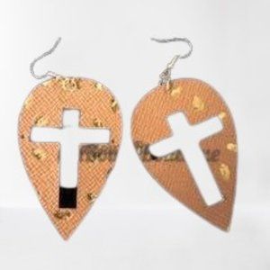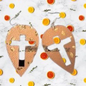 Beautiful Brown w/ Gold Cross Cutout Faux Leather Earring