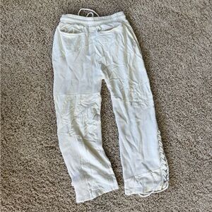 Stylish white pants with lace-up details. Comfortable and chic design. Perfect for casual wear.
