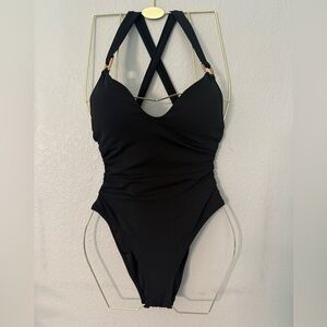 New! Robin Piccone Margot Lace-Up Back One-Piece Swimsuit Black Sz 8 $168