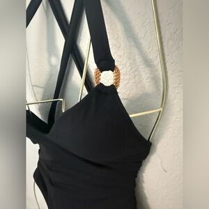 - One piece featuring raffia ring details on straps for a unique, natural flair
