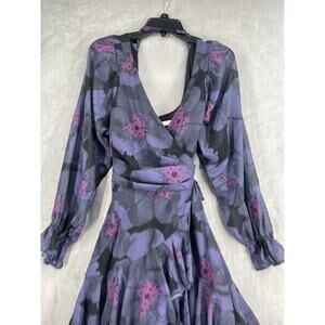 Chic floral maxi dress with long sleeves. Wrap style for a flattering fit. Ideal for special occasions.