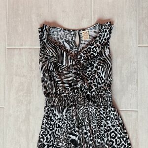 Faded Glory Maxi Dress Sleeveless V Neck Animal Print 4-6 Black White Pullover
