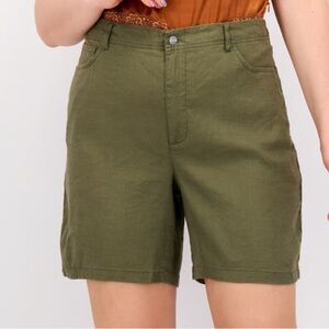 NYDJ Womens Neutral Olive Green Linen Blend High Rise Shorts 8