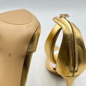 FSJ Gold Pointy Toe Stiletto Heels Evening Ankle Strap Zip Pumps