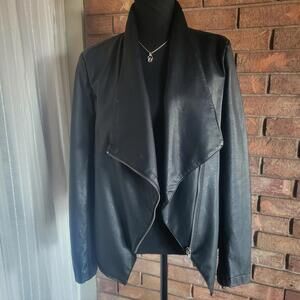 NWT BB Dakota "Gabrielle" Faux Black Leather Asymmetrical Jacket Moto - Size L