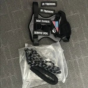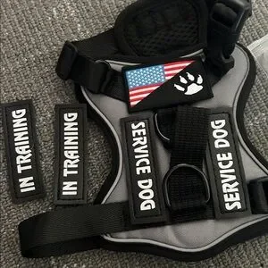 Comes with one American flag patch, two "SERVICE DOG" patches