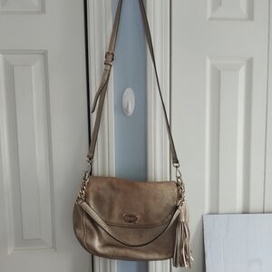 Michael Kors Bedford Tassell Gold Pebble Leather Flab Bag Crossbody