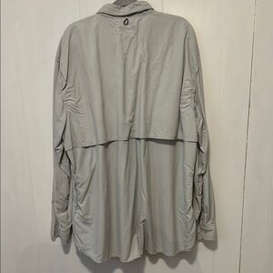 Stylish and versatile gray jacket perfect for any ocean excursion. Side and back ventilation. Features a sleek design with practical pockets. Ideal for layering in cooler weather. Mens size XXL.