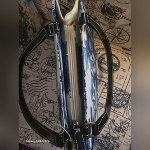 French Country Scenic Fashion Handbag EUC, Blue & Cream Color