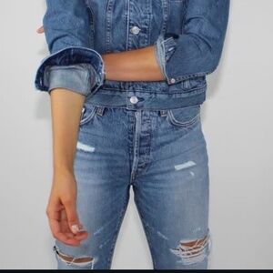 New with tags Daily Blue Adriano Goldschmied jeans in the Tempest wash. This is a sold-out style, the Classic Cropped Jean in Tempest, constructed from Japanese Rigid Denim.