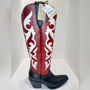Ariat Elviria Stretchfit Tall Western Boots, Size 8|EUR 38.5, new no box, leather, red & black, zip on inside of boot, X toe, 18" shaft, 2.5" heel, heel to toe 9.5", photos show true condition of boots, boots over 5 lbs