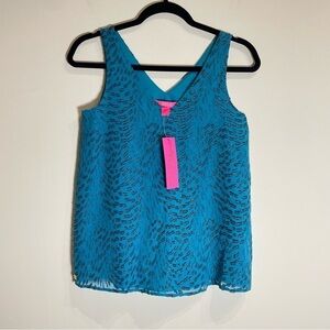 Lilly Pulitzer Florin Silk Top Teal Bay Silk Swirl Clip XXS NWT