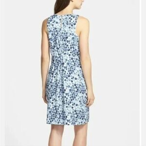 Nordstrom Collection. White with Blue Circle Designs, Stretchy Silk Blend, Highneck, Sleeveless, Just above the knee length Dress. Size 4.