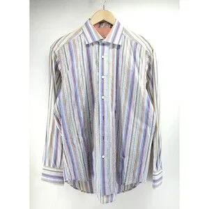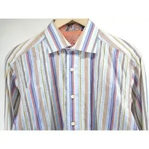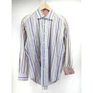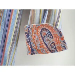 ROBERT GRAHAM Multi Color Stiped Flip Cuff Embroidery Button Down Shirt Medium