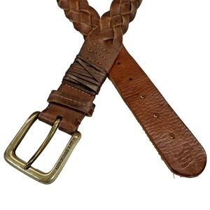Abercrombie & Fitch Vintage Men's Brown Leather Braided Belt Medium Moose Logo
