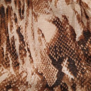 In very good used condition minor wear no flaws. All over snake print very thin/lightweight with double boytom slits. Tie at the neck and the bust with elastic in the back. Size 2 tall in 100% cotton.
