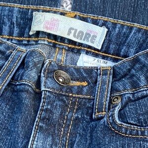 Faded Glory flare denim jeans- size 7 slim. Great pre-owned condition! Button and zip intact. Adjustable waist. Possibly brand new and never worn!