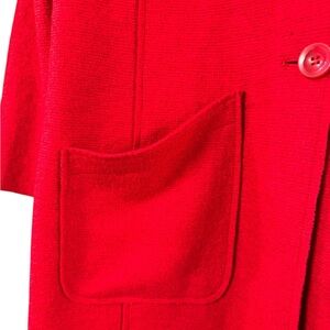 This vibrant red trench coat from Chico's features a classic button-front design and a structured silhouette, making it a standout piece in any wardrobe. Crafted from a sturdy fabric, it offers both style and durability, perfect for professional settings or making a bold fashion statement.
