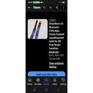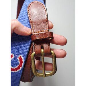 Smathers & Branson Cubs Hand-Stitched Needlepoint Leather Belt Blue Size 44 Men
