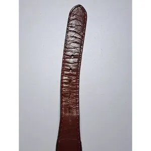 Minor wear visible on leather and brass buckle; no significant damage. Total length = 44 inches.