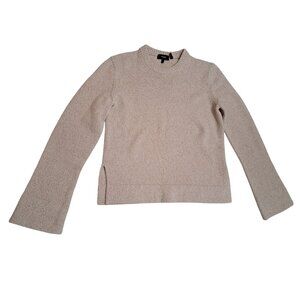 Theory Cashmere Wool Blend Bouclé Knit Sweater Beige Long Sleeve Small Women's