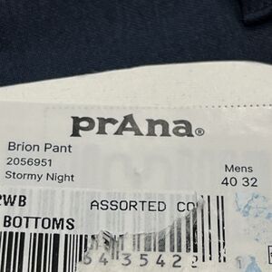 prAna NEW Brion Pants Mens 40x32 Dark Blue Standard Fit Water Repellent Hiking