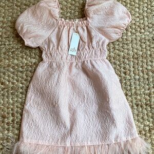 New w Tag: GB Girls Jacquard Puff Sleeve Dress with Feather Hemline. Size 6