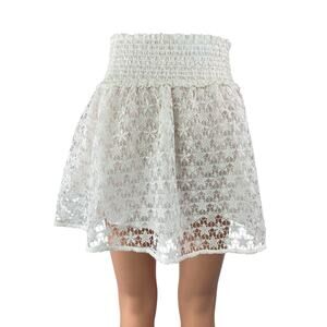 Hill House White Star Lace Smocked Elastic Waist Mini Flare A-Line Skirt Size S