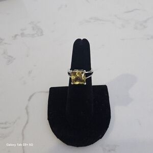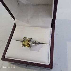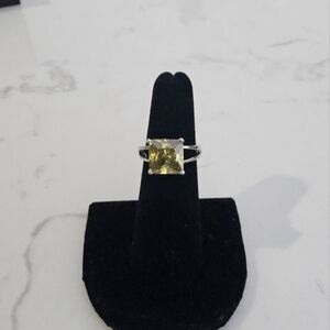 Crafted With Precision And Elegance, This Stunning Ring Showcases A Brilliant 5.50 Ct Princess-cut Peridot Stone, Exuding Timeless Allure. The 10mm Gem Rests Securely In A Prong Setting, Allowing Light To Dance Upon Its Facets. The Band, 2.2mm Wide, Is Expertly Forged From A Lead-free Alloy Of Brass, Ensuring Both Durability And Environmental Consciousness. Adorned With A Lustrous Rhodium-shiny Plating, This Ring Boasts A Mesmerizing, Mirror-like Finish. Believed To Be A Simulated Gemstone